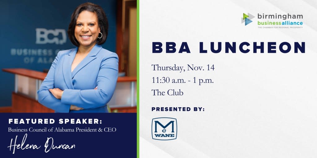BBA's luncheons provide a platform for Birmingham businesses to engage in conversations that matter, make great connections with other business leaders and shape our community's thriving future. This event is an opportunity for our speaker to address the Birmingham business community directly and share invaluable information.