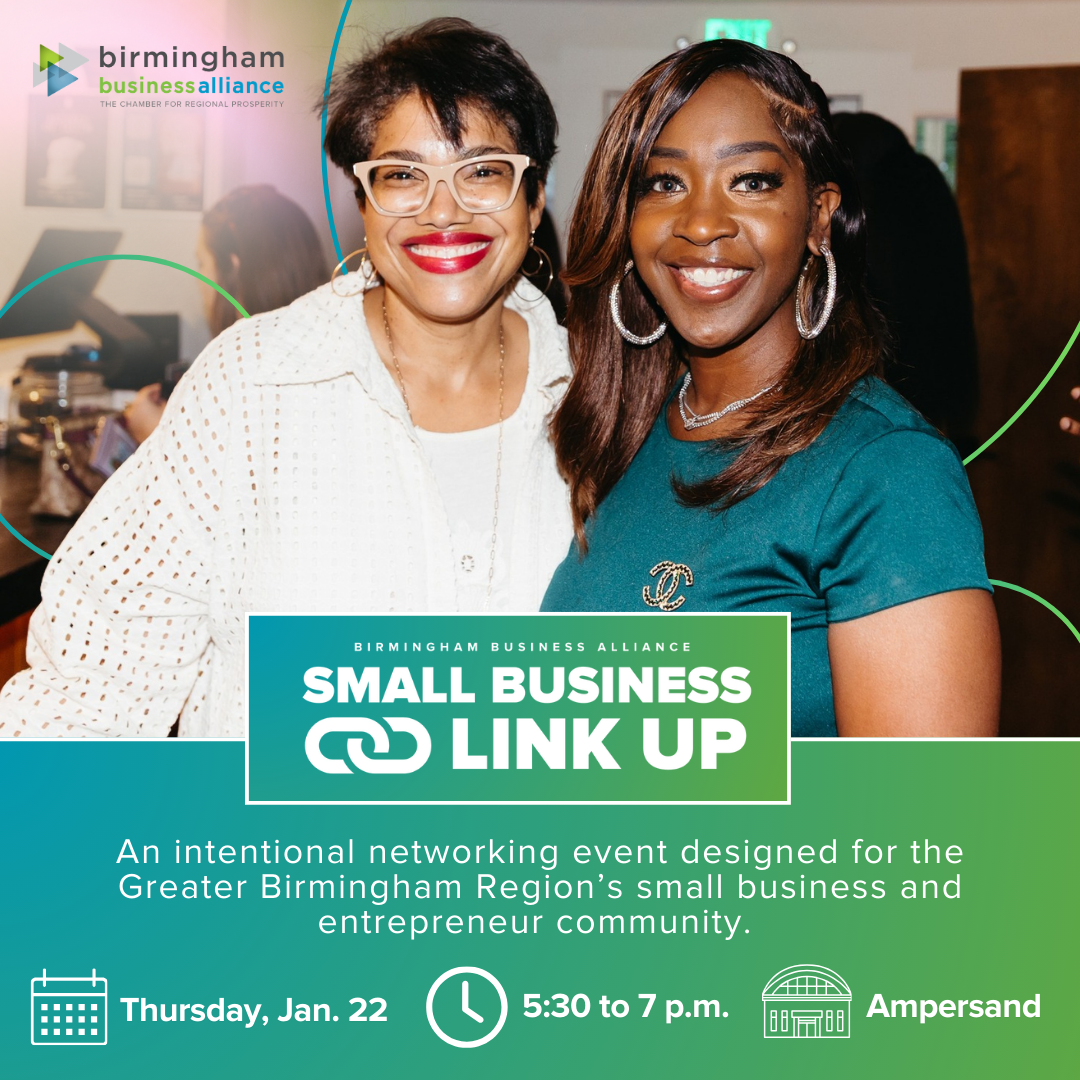 On Thursday, Jan. 22 from 5:30 to 7 p.m. at Ampersand, the Birmingham Business Alliance invites small business owners and entrepreneurs to our first-ever BBA Link Up event. This intentional networking happy hour is designed exclusively for entrepreneurs across the Greater Birmingham Region to connect, share ideas, and build relationships that move business forward. Each BBA Link Up is hosted at a local bar or restaurant and is free for registrants. Come with a fully charged social battery and a pocketful of business cards.