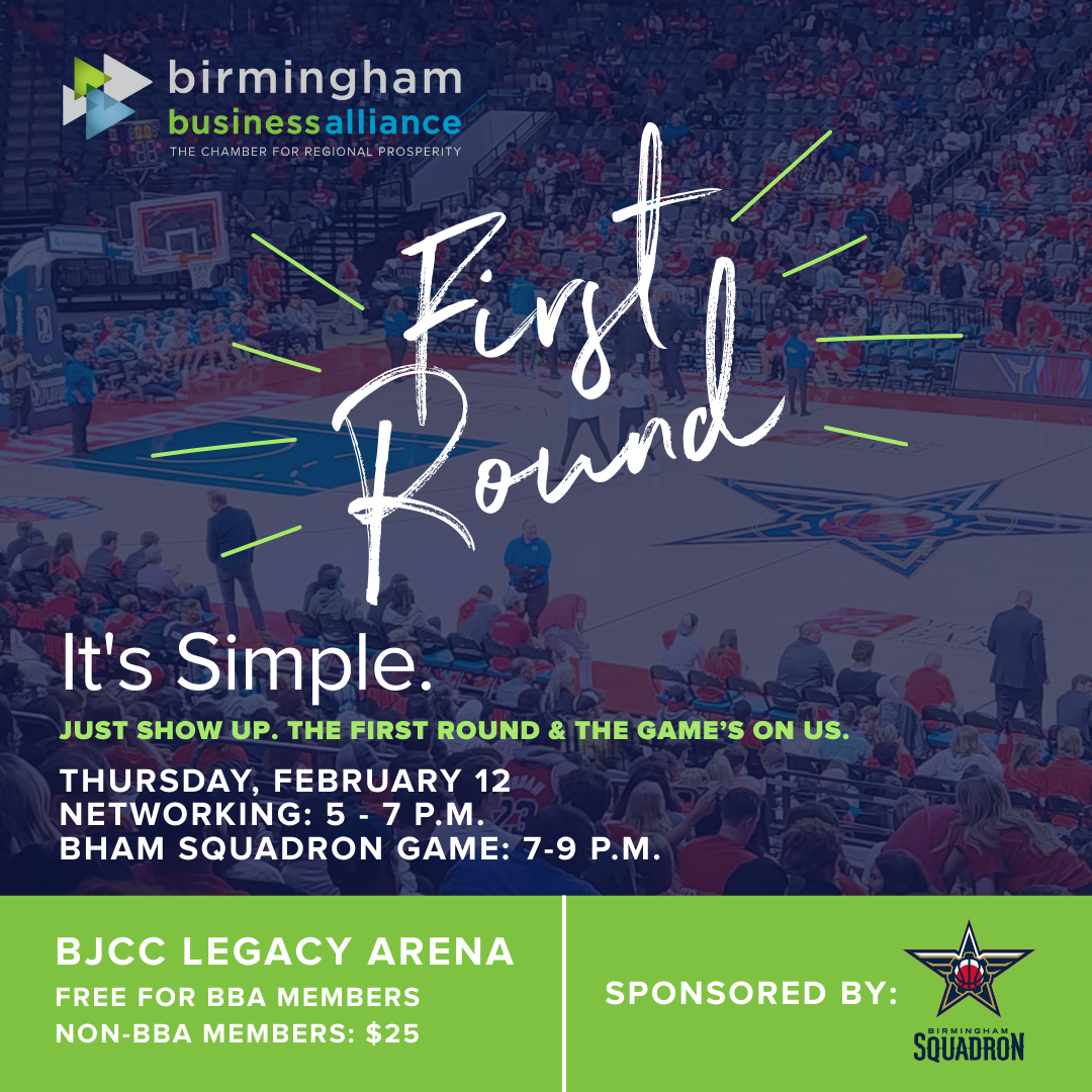 Step onto the court of connection at First Round, the Birmingham Business Alliance’s bimonthly networking series where meaningful relationships and great conversations are always in play. This elevated after-hours event brings together the business community and offers Birmingham Business Alliance members, guests and partners a relaxed, social setting to network and mingle — with the first round on us.