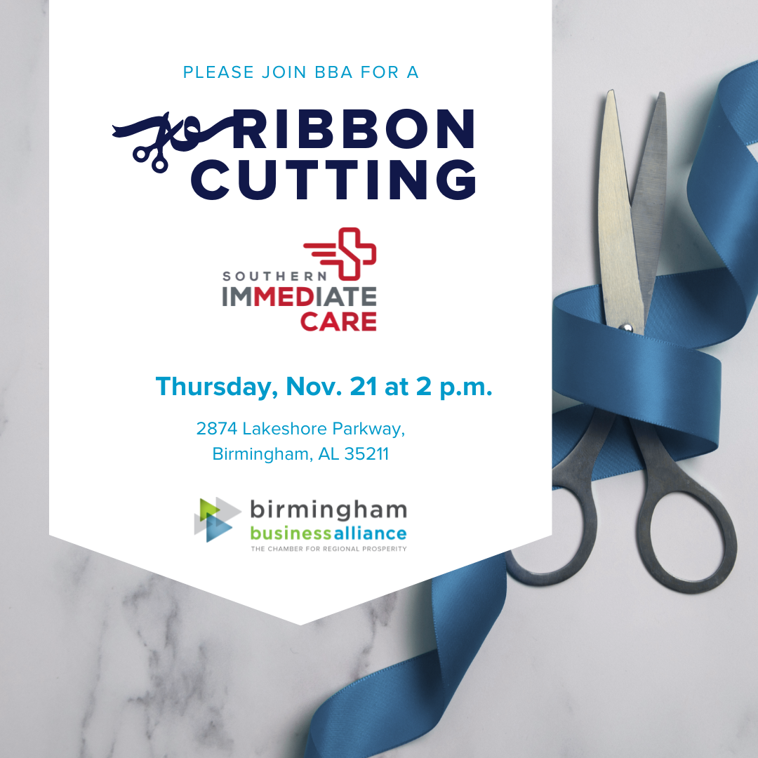 On Thursday, Nov. 21 at 2 p.m., join us for Southern Immediate Care’s ribbon cutting ceremony at their new clinic in Lakeshore located at 2874 Lakeshore Parkway, Birmingham, AL 35211.